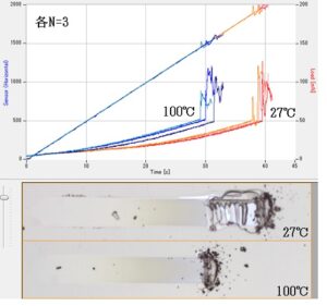 SiO2膜を加温環境下でスクラッチ試験した測定結果
