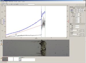 上記に超薄膜スクラッチ試験機の測定結果の代表例を示します。