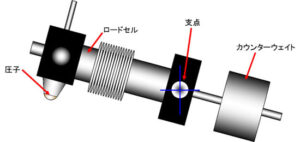 摩擦摩耗試験機においては、実際の使用環境を模擬する事が重要とされ、実験レベルとはいえ出来るだけ実環境に近い状況下での測定が望まれます。この為、ディスク状試料に対し圧子と呼ばれるボール(ピン)状の材質も実環境で摩擦が発生することが想定される材質を望まれます。この為、各種材質及び形状のボールをご用意いたしておりますが、材質によりボールの重量は異なることとなってしまいます。又、圧子側もまた試料としてご用意いただく場合もございますが、球状や棒状への加工が難しいものも多く、例えばフィルム材などの場合は、弊社でフィルム材を圧子の変わりに取り付けることの出来る部品を設計製造させていただきますが、この場合も大きく圧子側の重量が代わってしまうこととなり、これらの重量をキャンセルする機構が本試験機には必要な機能となっております。フリクションプレーヤ(摩擦摩耗試験機)では、圧子の取り付けられる測定部はに対し、支点の逆側にカウンターウェイトが取り付けられており、このカウンターウェイトの支点からの距離を移動させることで、バランスをとることが出来るようになっております。丁度支点を中心にやじろべぇのような構造になっております。