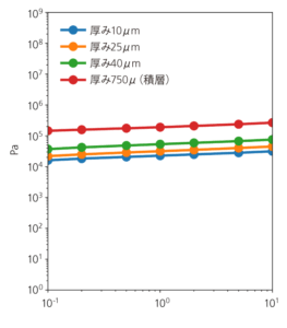 実際に、PET基材に定着された厚み数十μm程度の単層粘着シートと厚み数百μmの積層粘着シートとの比較試験を行った結果、tanδの値がほとんど一致しました。