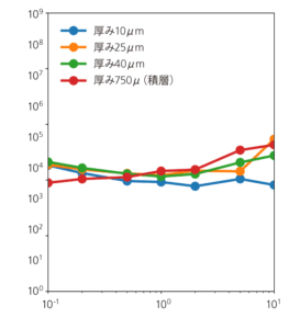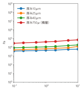 粘着シートに用いられる粘着剤はその厚みが数~数十μm程度ですが、従来の粘弾性測定装置ではそのままの厚みでの測定が難しく、粘着剤を数十枚積層させた試料を用いて測定を行う必要がありました。