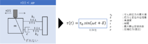 接触子が測定サンプル上で滑らない場合など、測定した抵抗力の波形が正弦波となる場合は、近似的に動的粘弾性の考え方が適用でき、素材の貯蔵弾性率と損失弾性率が求められます。