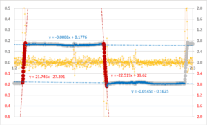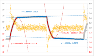 上記DLCとNBRの波形では反転駆動時(🔴) および滑走時(🔵) の挙動が異なっているのがわかります。