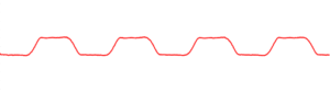 圧子と材料表面の間に動摩擦が発生した場合は、検出される力がほぼ一定となる領域が存在する矩形状の波形を示します。